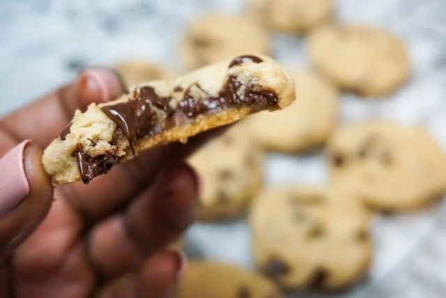 Warm chocolate chip cookies and a glass of cold milk take me back to a time when life was a bit less chaotic and adulting wasn't on the list of things to do. They're that perfect little treat that always seem to be gone just a tad bit too soon; leaving behind yummy chocolate coated finger tips that you can't help to indulge with a lick...or two.